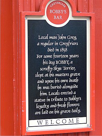 File: Sign about Greyfriars Bobby, who stayed by his master's grave for 14 years.JPG