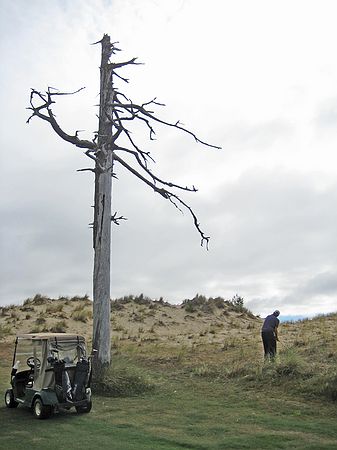 File: Florence - Ocean Dunes - Livingston's ball hit this dead tree and went into the sand dune.jpg